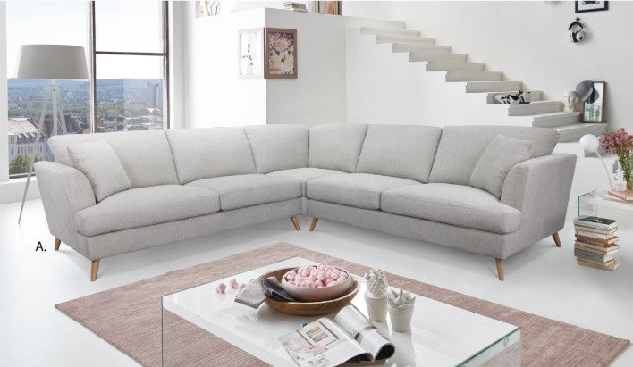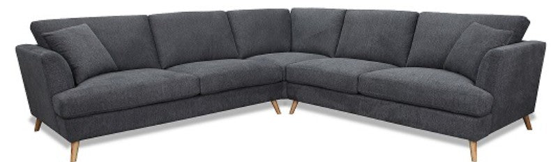 The Annemarie Corner Modular offers a sleek, modern design with a versatile 2-seater corner and 2-seater combination. Featuring soft, hard-wearing fabric in a light color, it ensures both comfort and durability. Choose from stylish charcoal or slate feet to perfectly complement your living space. This modular sofa is ideal for contemporary homes seeking both functionality and timeless elegance.