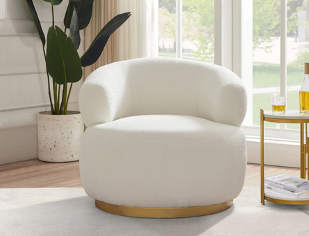The Bellissimo Oro Swivel chair is a swivel chair upholstered in a white Bertoni Boucle fabric.