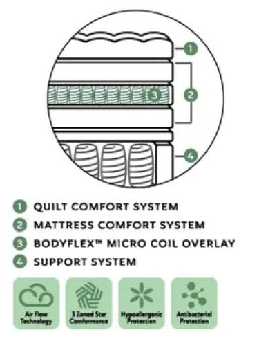 Experience unparalleled sleep with the Cashmere Elegance Mattress. Featuring a luxurious cashmere comfort layer combined with advanced airflow technology, it keeps you cool and comfortable all night. Its gel-infused memory foam and latex convoluted layers offer hypoallergenic and antibacterial protection while delivering exceptional support. The 7-zoned center support and dual pocket coil spring systems provide targeted pressure relief and superior spinal alignment for the ultimate restful experience. Transform your nights with this mattress designed to balance comfort, support, and hygiene perfectly.