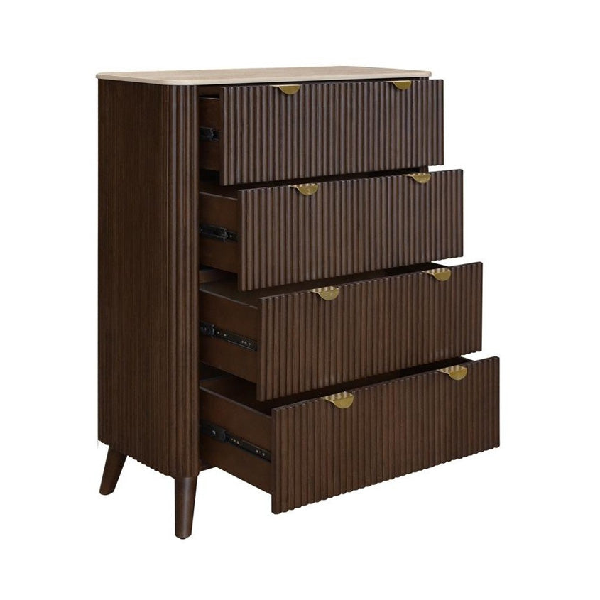 This six-drawer dresser showcases premium Malaysian hardwood construction paired with a striking travertine-finish sintered stone top that laughs in the face of daily wear and tear.