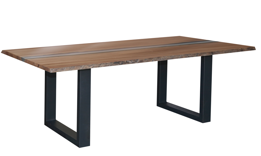 The resin details are the focal point of this stunning table. The steel legs of the frame add a slight industrial look to the table.