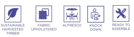 • The generously filled cushions are upholstered in Olefin fabric which is