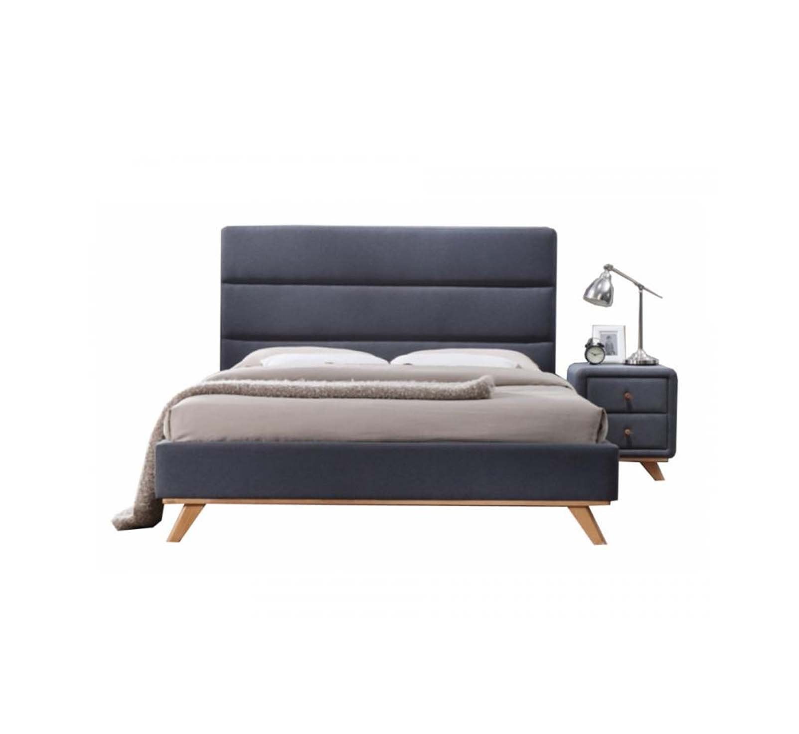 The Leanne bed comes in a double, queen or king size, making it suitable for any type of bedroom. It's made of a stylish dark grey fabric, and the bed frame is held up by four natural solid timber legs. Also available is a matching bedside.