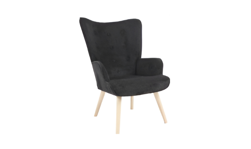 The Black Luna Accent chair is a buttoned high back chair with natural color legs.