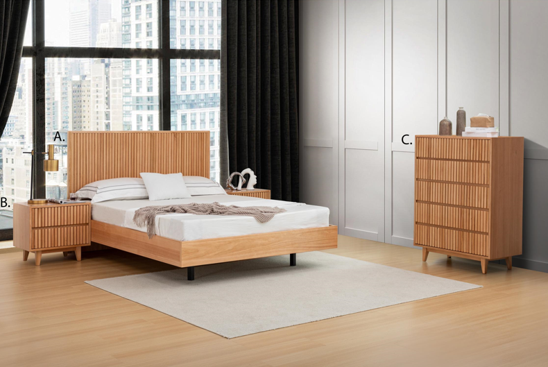 The Sia is available in queen and king bed sizes, all of which come with a Centre support rail. Made from Messmate Natural finish with extension runners on all drawers.